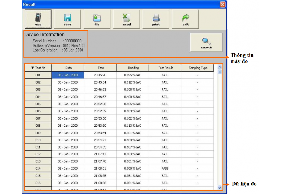 Kết quả đo được tải đến máy tính hoặc in ra bằng máy in cầm tay. Ngoài ra Máy đo nồng độ cồn Sentech AL9010 có thể lưu trữ lên đến 500 kết quả kiểm tra. Đặc điểm nổi bật Máy đo nồng độ cồn AL9010: Thiết kế nhỏ và rất nhẹ thuận tiện cho việc sử dụng cầm tay. Kiểm tra nhanh, kiểm tra cho kết quả chính xác cao. Máy sử dụng pin tiểu phổ biến, rất dễ thay thế pin khi hết pin. Cho phép kết nối máy tính hoặc máy in cầm tay, thuân tiện cho việc in ấn hoặc sao lưu kết quả. * Thông số kỹ thuật Máy đo nồng độ cồn Sentech AL9010: